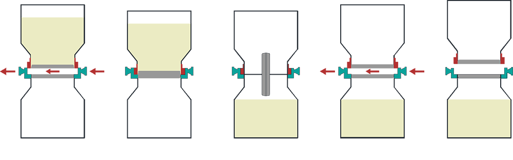 A tecnologia da válvula αβ oferece a possibilidade de transferir materiais em pó de um dispositivo para outro de maneira fechada, minimizando a exposição de pós estéreis altamente ativos ao ambiente externo durante o processo de transferência, estabelecendo uma barreira protetora entre operadores e materiais a serem processados, e também protegendo o ambiente estéril dos materiais.